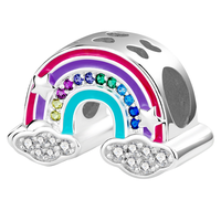 Popular S925 Sterling Silver Charming Horseshoe Beaded pink Crystal cat Four-leaf Clover Pendant DIY Jewelry Bracelet Accessory